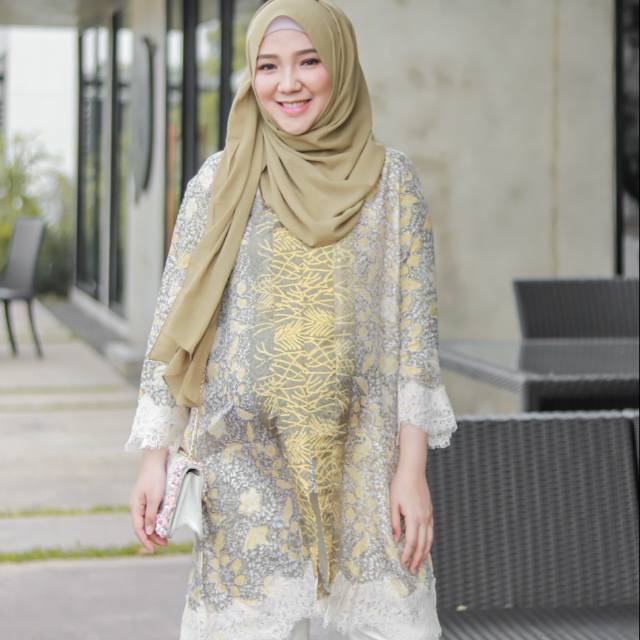 Name: Meysa Manar Tunik Batik Renda Premium Ready Stock - 1 Set Maheswari Lime